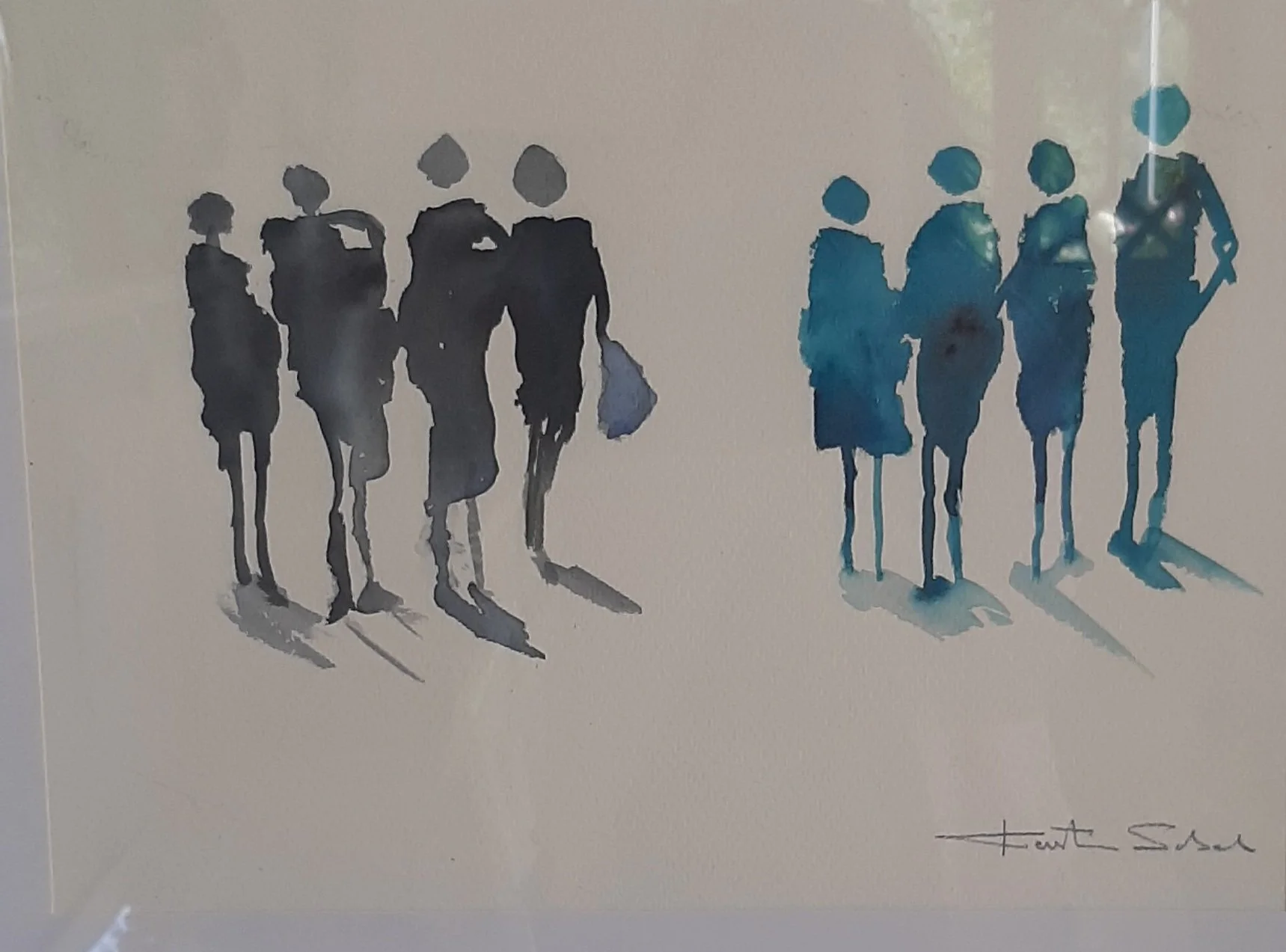 Väntar är en målning som fångar en känsla av samhörighet och avstånd på samma gång. De sex …
